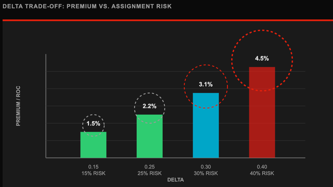 They drift upward in delta because the premium “looks better,” without acknowledging the increased assignment frequency.